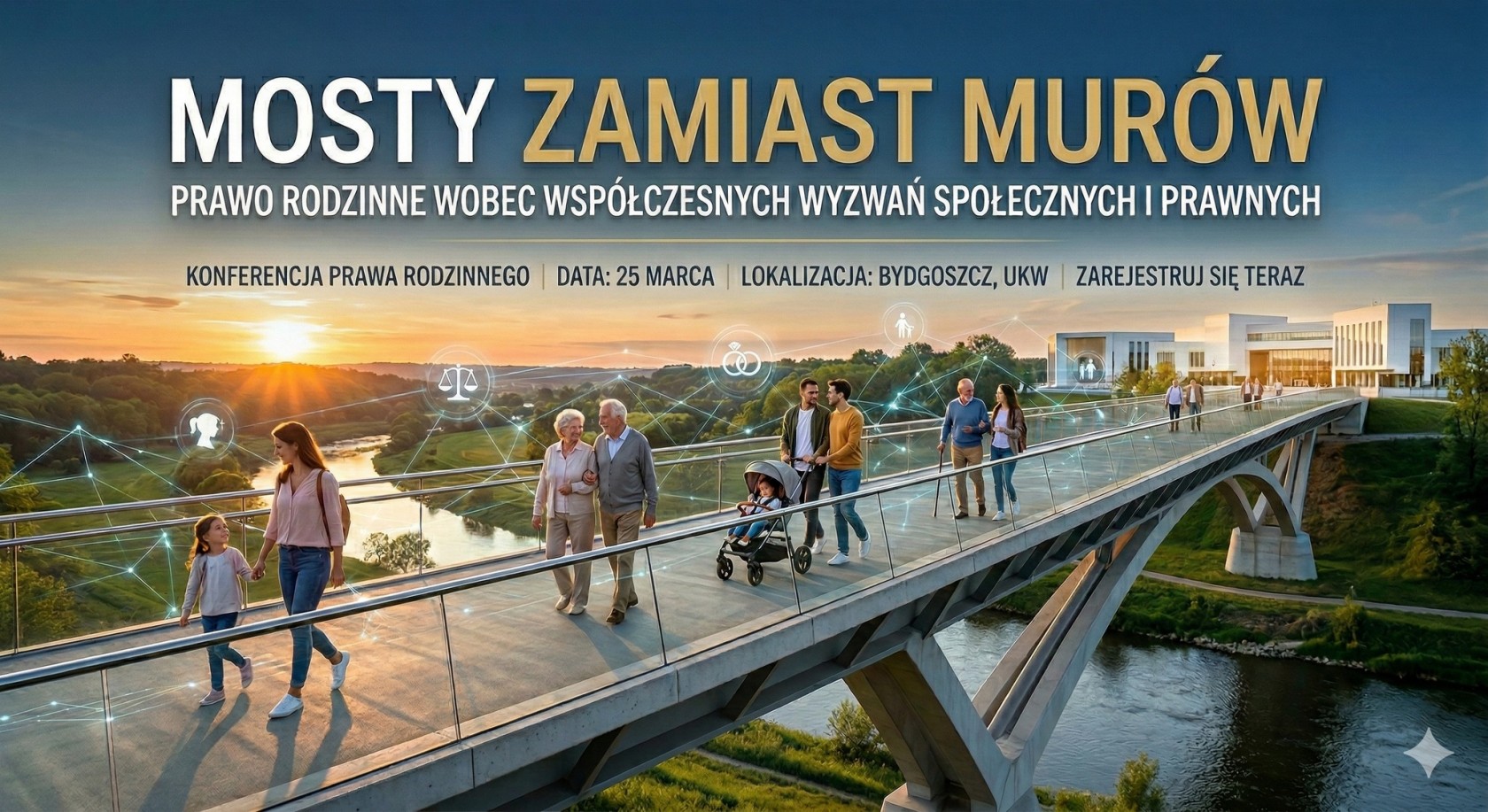 W ramach obchodów Jubileuszu 75’ lecia Izby w dniu 25 marca 2026r. od godz. 8.45 zapraszamy do udziału w konferencji „Mosty zamiast murów – Prawo rodzinne wobec współczesnych wyzwań społecznych i prawnych”, organizowanej przez Komisję Edukacji Prawnej przy Kujawsko-Pomorskiej Izbie Adwokackiej w Bydgoszczy we współpracy z Wydziałem Prawa i Ekonomii Uniwersytetu Kazimierza Wielkiego w Bydgoszczy.